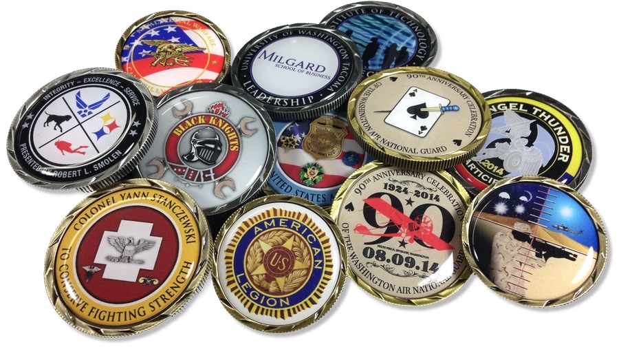 Military Challenge Coins are largely used by US, Canadian, British, German, and Australian military forces to symbolize unit identity, recognize excellence, commemorate deployments, remember the fallen, foster esprit de corps and brotherhood. Other military forces around the World have started to adapt this culture. Read more about Challenge Coins at Wikipedia.